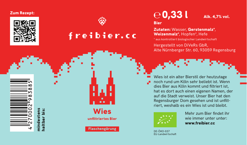 der an die Stadt Köln erinnert. Da wir aber in sichtweise des Regensburger Domes gebraut haben, und unser Bier zudem noch unfiltriert ist, läuft es unter dem Namen Wies, welches den ganzen