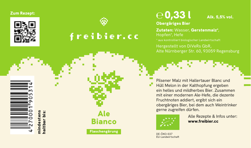 - Hopfengabe WHP: 100g Bio Hallertauer Blanc, Pellet Typ 90, Biohof Eckert, Ernte 2024