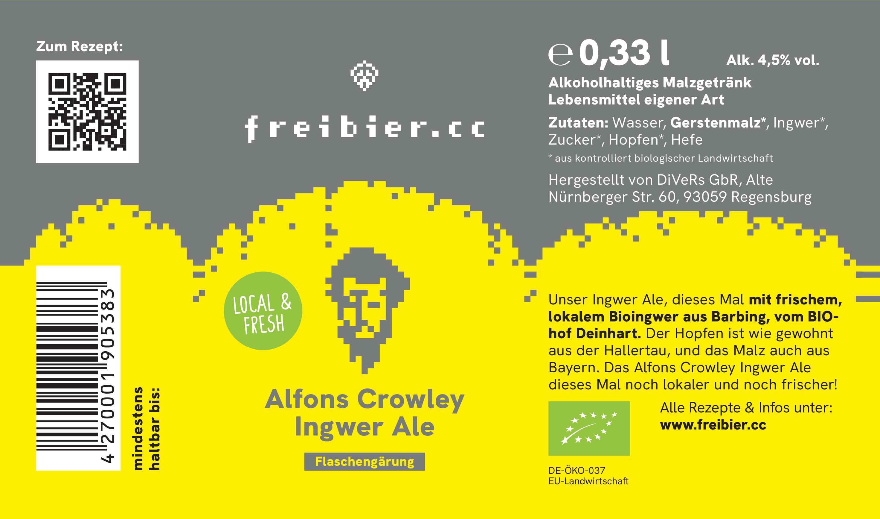 Unser Alfons Crowley Ingwer Ale dieses mal in der "local & fresh" Edititon. Mit frischem, nicht getrocknetem Bioingwer vom